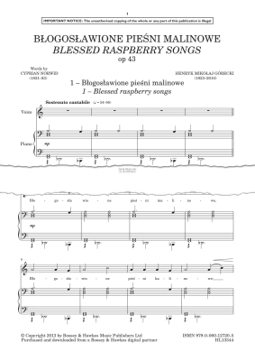 Blogoslawione piesni malinowe (Blessed raspberry songs) Op.43 - Noten für Gesang, Klavier Henryk Mikolaj Górecki