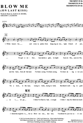 Blow Me (One Last Kiss) - Noten für Trompete in B Pink