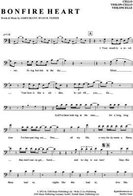 Bonfire Heart - Noten für Violon-Cello James Blunt