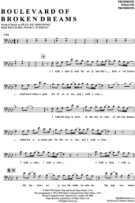 Boulevard of broken dreams - Noten für Posaune / Bariton Green Day