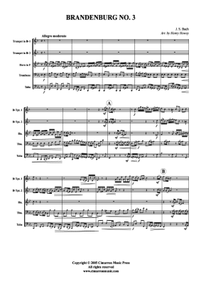 Brandenburgisches Konzert Nr. 3 - Noten fĂŒr BlechblĂ€serquintett J. S. Bach