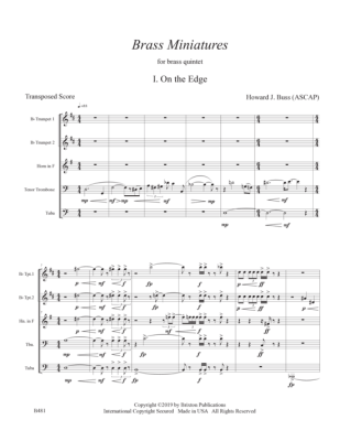 Year Of Composition: 2018 / Duration: 7ÂŽ22" / BRASS MINIATURES for brass quintet by Howard J. Buss is in 4 short movements inspired by light and images reflected on polished brass: On the Edge, Refractions, Facets, and Illuminated Reflections. In November
