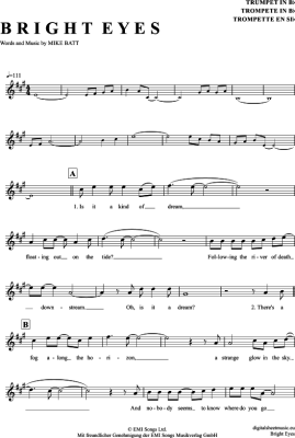 Bright Eyes - Noten für Trompete in B Art Garfunkel