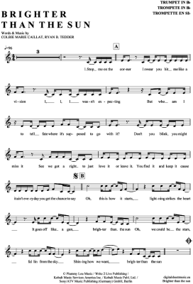 Brighter than the sun - Noten für Trompete in B Colbie Callait