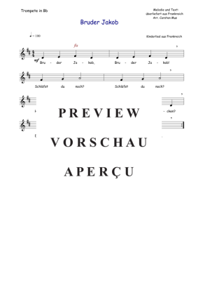 Bruder Jakob ist ein populäres Kinderlied für Trompete. Für den leicht fortgeschrittenen Trompeter als Übungs oder Vortragsstück bestens geeignet. (D-Dur)