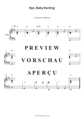 Dieses Notenheft enthält die Originalnoten zum Kinderlied "Bye, Baby Bunting" für Klavier. Für Anfänger arrangiert in D-Dur.
