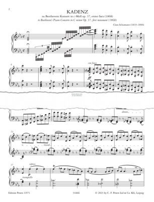 Cadenza to Beethoven's Piano Concerto in C Minor Op.37, first movement - Noten für Klavier Clara Schumann