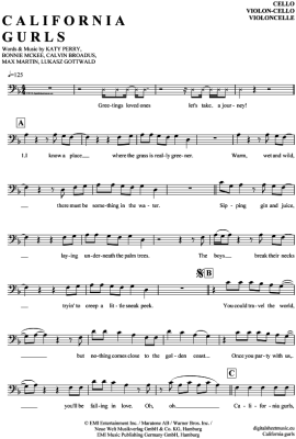 California gurls - Noten für Violon-Cello Katy Perry feat. Snoop Dogg