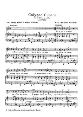 Calypso Cubana - Noten für Klavier und Gesang Calypso