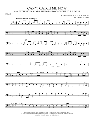 Can't Catch Me Now (from The Hunger Games: The Ballad Of Songbirds & Snakes) - Noten für Violoncello Olivia Rodrigo