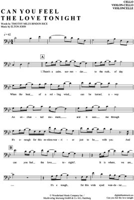 Can you feel the love tonight - Noten für Violon-Cello Elton John