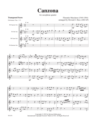 Canzona - Noten für Saxophonquartett SATB Florentio Maschera
