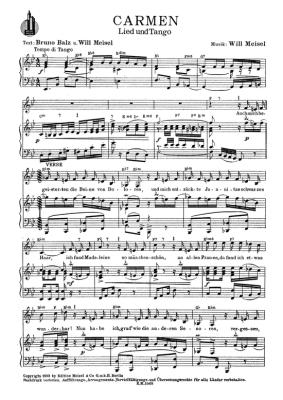 Carmen - Noten für Klavier und Gesang Lied und Tango