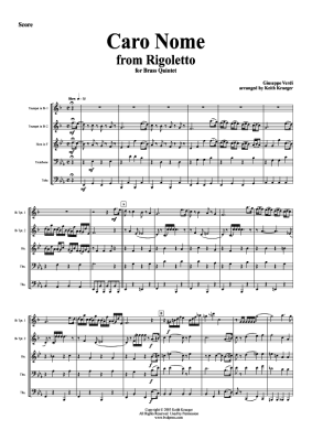 Caro Nome - Noten fĂŒr BlechblĂ€serquintett Giuseppe Verdi (aus: Rigoletto)