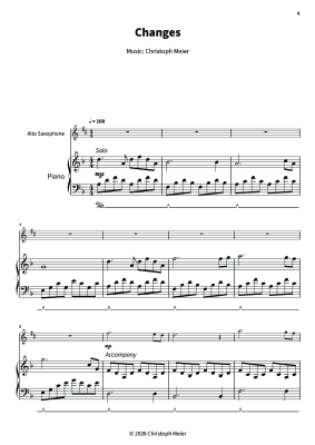 "Changes" is a focused, musician-friendly arrangement by Christoph Meier for alto saxophone and piano that sits comfortably in D minor and moves in a steady 4/4.