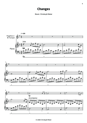 "Changes" is a focused, musician-friendly arrangement by Christoph Meier for flugelhorn and piano that sits comfortably in D minor and moves in a steady 4/4.