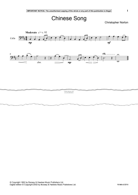 Chinese Song - Noten für Klavier, Violoncello Christopher Norton