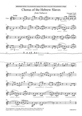 Chorus of the Hebrew Slaves from 'Nabucco' - Noten für Flöte, Klavier Giuseppe Verdi