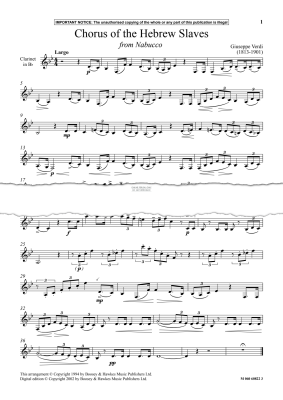 Chorus of the Hebrew Slaves from 'Nabucco' - Noten für Klarinette, Klavier Giuseppe Verdi