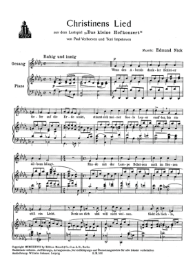 Christinens Lied - Noten für Klavier und Gesang Chanson