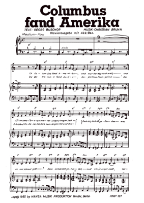 Columbus fand Amerika - Noten für Klavier und Gesang Siw Malmkvist