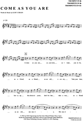 Come as you are - Noten für Trompete in B Nirvana