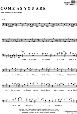 Come as you are - Noten für Violon-Cello Nirvana