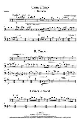 Concertino - Noten für Blechbläserquintett + Orgel Posaune 1 Konrad Seckinger (3 Sätze)