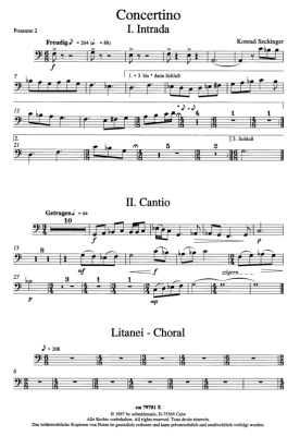 Concertino - Noten für Blechbläserquintett + Orgel Posaune 2 Konrad Seckinger (3 Sätze)