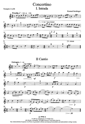 Concertino - Noten für Blechbläserquintett + Orgel Trompete 2 in B Konrad Seckinger (3 Sätze)