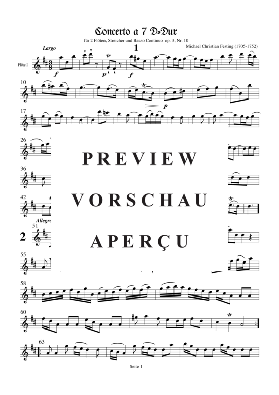 Concerto a 7 D-Dur op.3 Nr.10 (2 Flöten + Streichquartett)