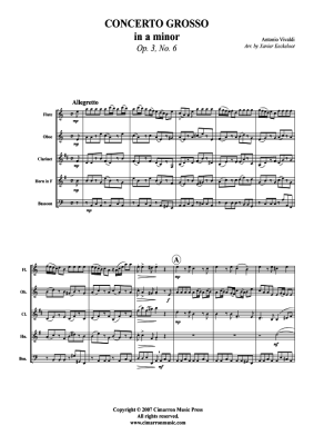 Concerto Grosso in A Moll - Noten fĂŒr HolzblĂ€ser-Quintett Antonio Vivaldi (Op. 3, Nr. 6)