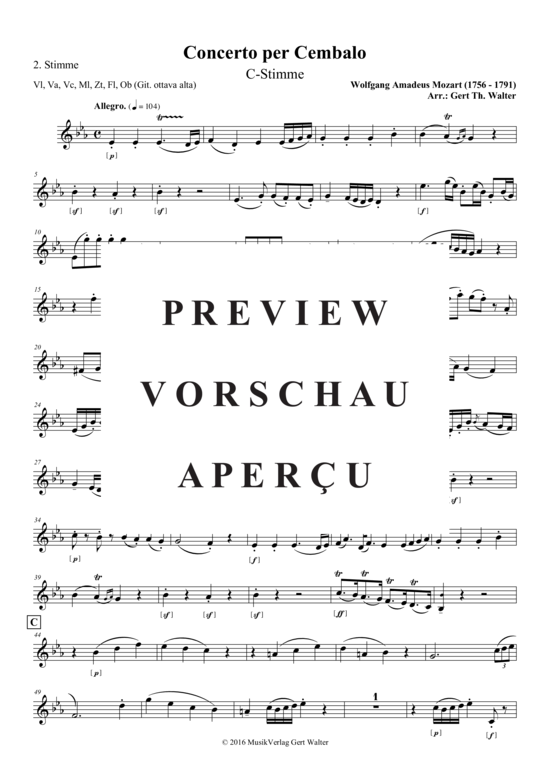 2.Stimme in C, z.B. Vl, Va, Vc, Ml, Zt, Fl, Ob (Git ottava alta)