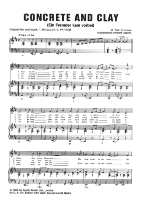 Concrete and Clay (Ein Fremder kam vorbei) - Noten für Klavier und Gesang Horst Wiegand