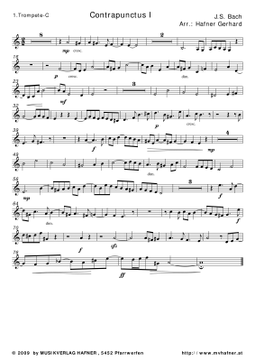 Contrapunctus I - Noten fĂŒr BlechblĂ€ser Quintett Johann Sebastian Bach