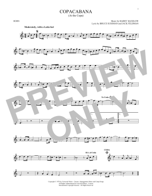 Copacabana (At The Copa) - Noten für Horn Barry Manilow