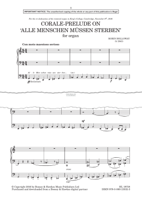 Corale-Prelude on 'Alle Menschen müssen sterben' - Noten für Orgel Robin Holloway