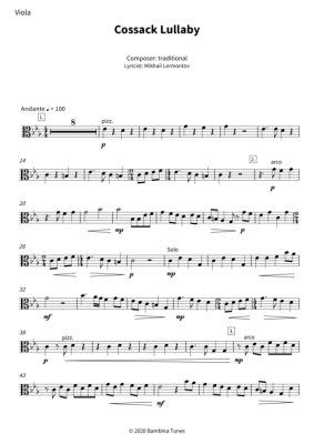 Cossack Lullaby - Noten für Bratsche traditional