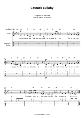 Cossack Lullaby - Noten für Gesang + Gitarre traditional