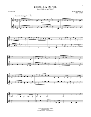 Cruella De Vil (from 101 Dalmatians) - Noten für Trompete Mel Leven