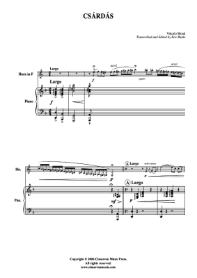 Csardas - Noten für Horn in F + Klavier Vittorio Monti
