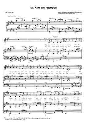 Da kam ein Fremder - Noten für Klavier und Gesang Howard Carpendale
