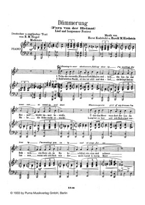 Dämmerung Fern von der Heimat - Noten für Klavier und Gesang Lied und Foxtrott