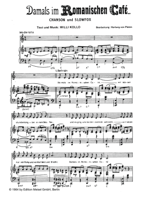 Damals im Romanischen Cafe - Noten für Klavier und Gesang Heinz Behrens