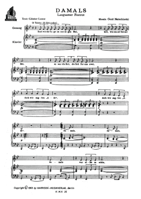 Damals - Noten für Klavier und Gesang Bärbel Wachholz