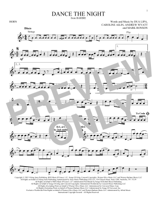 Dance The Night (from Barbie) - Noten für Horn Dua Lipa