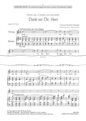 Dank sei Dir, Herr - Noten für Gesang, Klavier George Frideric Handel