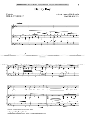 Danny Boy - Noten für Gesang, Klavier Traditional