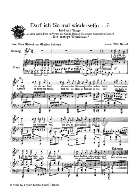 Darf ich Sie mal wiedersehn - Noten für Klavier und Gesang aus: Der lustige Witwenball (Film)