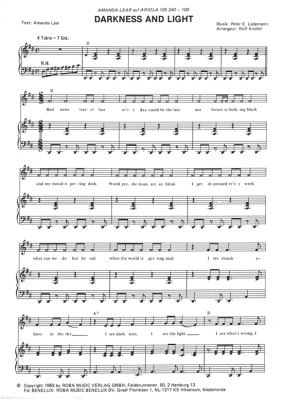 Darkness and Light - Noten für Klavier und Gesang Amanda Lear